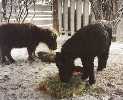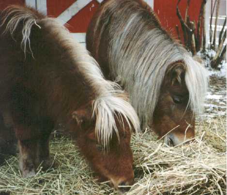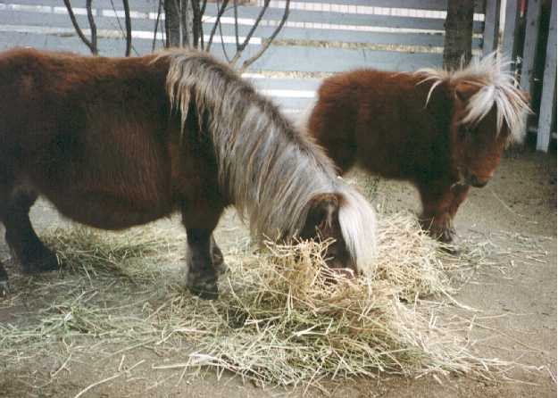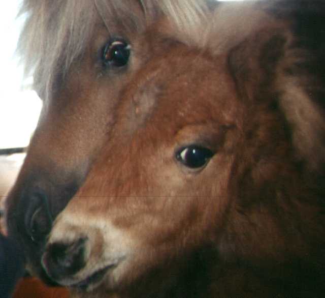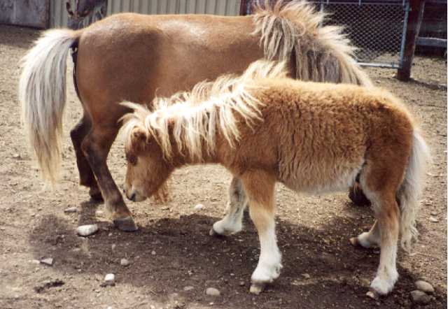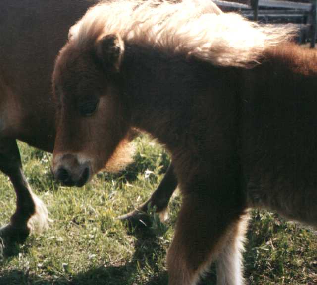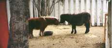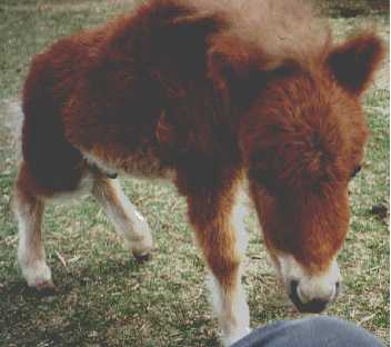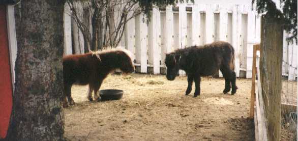 The first images on this page show PoohBear at just three weeks old! I've been trying to take pictures of him on a regular basis, allowing me to share his growth with my friends out there on the World Wide Web. The newer pictures show PoohBear and Penelope at home in their paddock in my backyard, and the newest ones show PoohBear and Dirk. Unfortunately, once the horses arrived here, I was kept so busy taking care of them that I didn't have as much time for picture taking as I did in the past, nor are my notes quite as accurate as they were at first, so I can only approximate their ages with the later pictures. I will always be adding more pictures to add to these pages, so please be sure to check back often. Also, be sure to check out other links to miniature horse sites on my Horsing Around page, not to mention the other end of the scale - the Draft Horses!