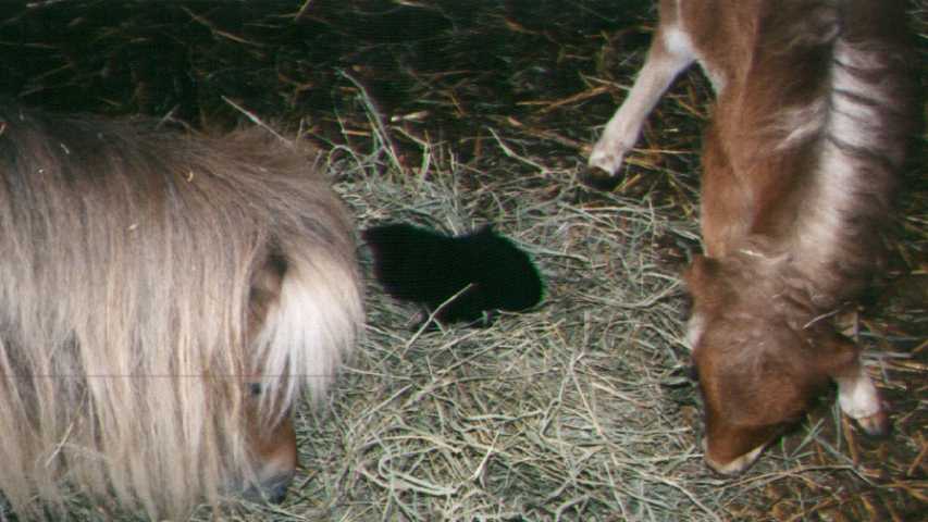 Ever curious, PoohBear and Penelope explore the front section of the barn.